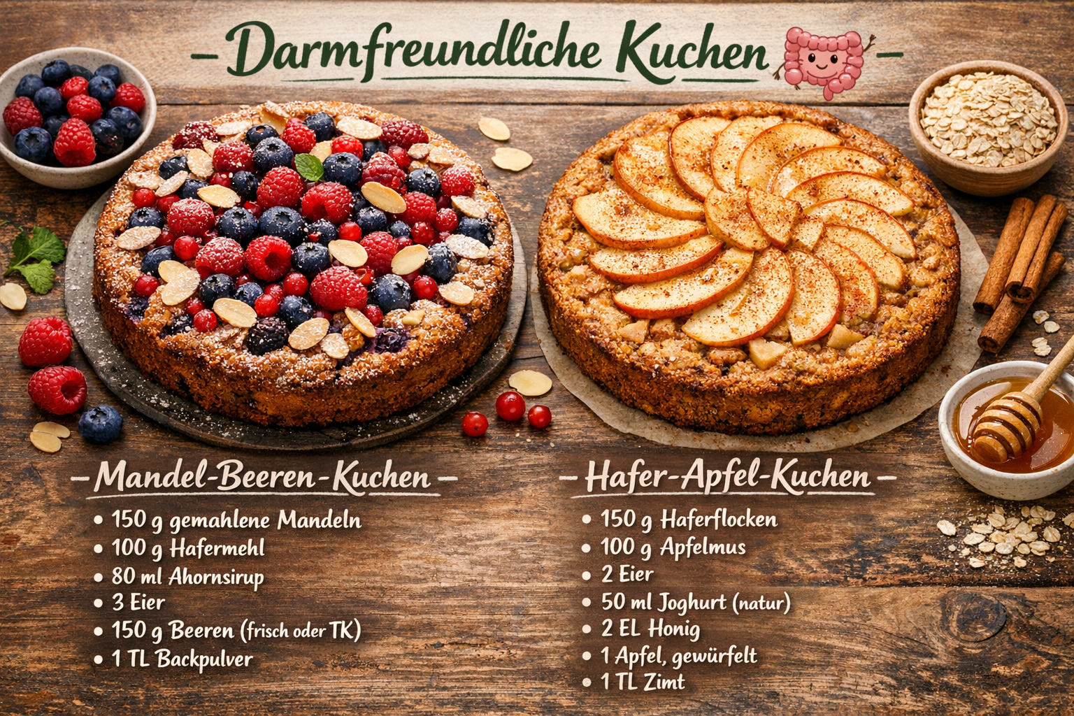 Entdecke 5 leckere, darmfreundliche Kuchenrezepte, die nicht nur himmlisch schmecken, sondern auch deine Verdauung unterstützen. In diesem kompakten E‑Book findest du einfache, ballaststoffreiche und gut verträgliche Backideen mit natürlichen Zutaten wie Hafer, Birne, Blaubeeren und Süßkartoffel. Perfekt für alle, die gesünder naschen möchten, ohne auf Genuss zu verzichten. Ideal für Clean Eating, Darmgesundheit und eine bewusste Ernährung. Jetzt speichern und später nachbacken.